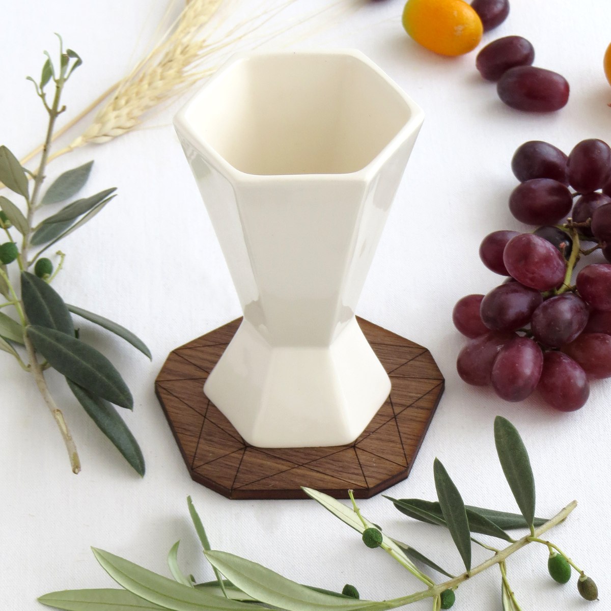 גביע קידוש - משושה מוגבה - קרמיקה לבנה