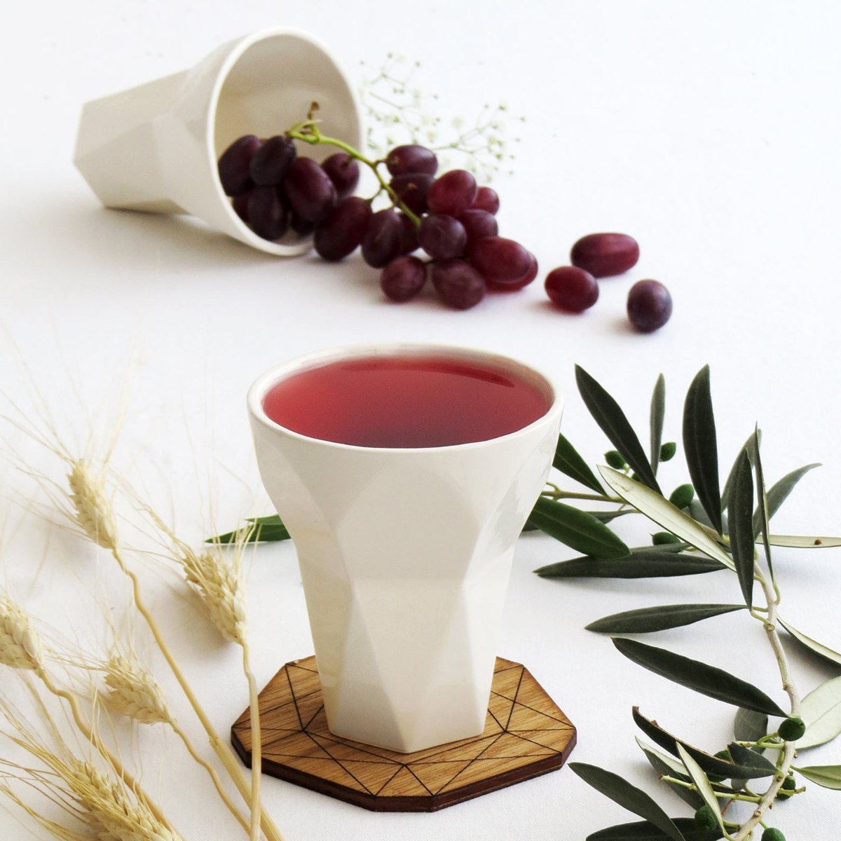 סט לשבת - כוס לקידוש וזוג פמוטי שבת בצורת משושה בעיצוב נקי ועכשווי, בהשראת אומנות קיפולי הנייר.